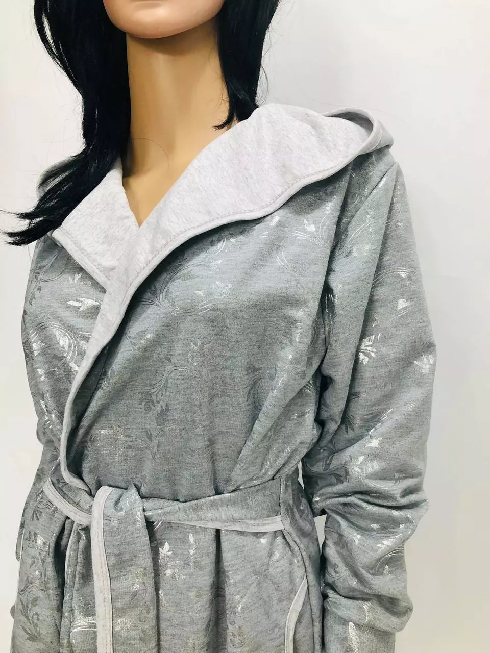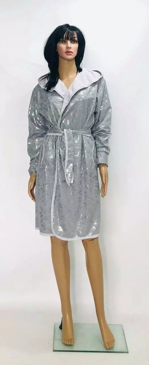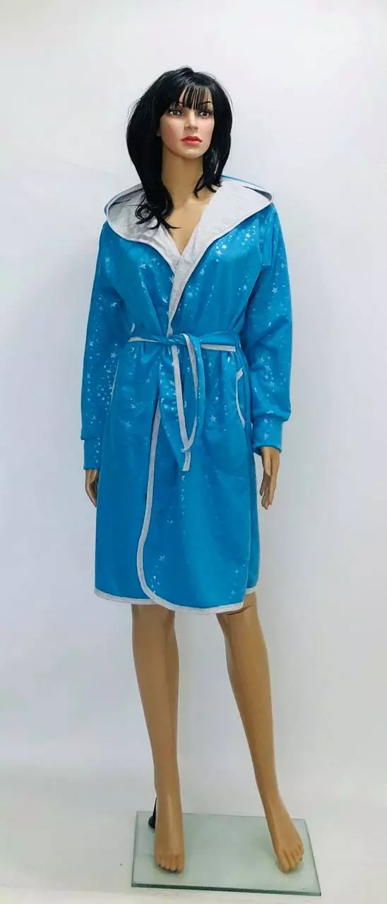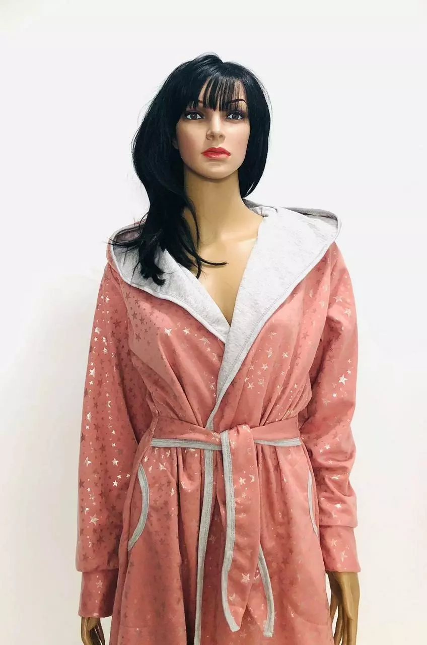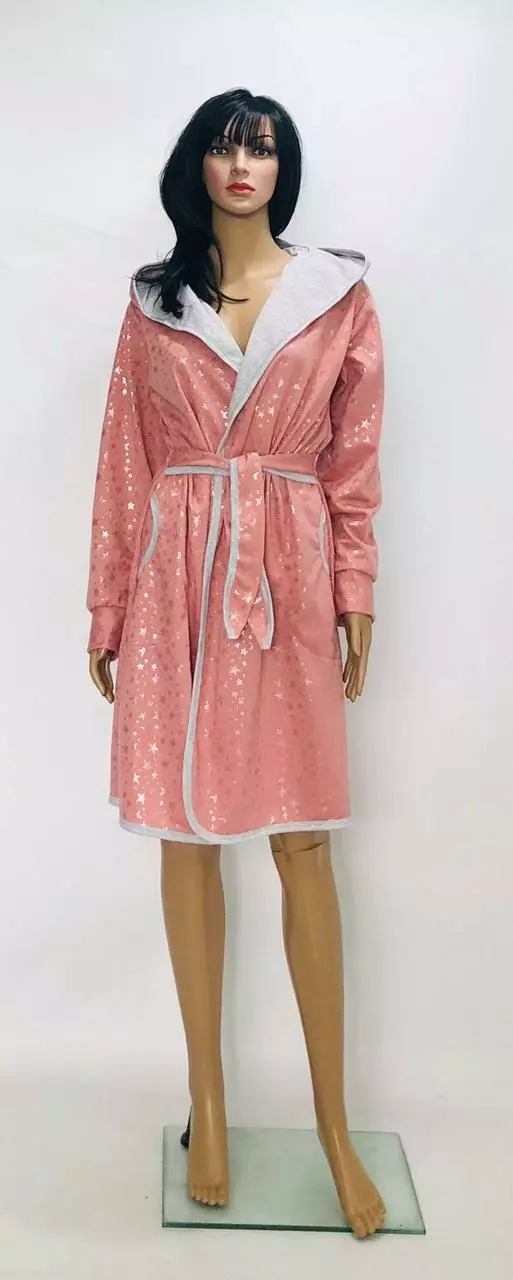 Домашний красивый халат на запах с капюшоном.Красивый домашний халат на запах ,пояс вшит в боковые швы ,что очень удобно не потерять его,два кармана на уровнеталии по спинке настроченные три мягенькие резиночки,они делают легкий призбор и визуально наряднее халат.За счет резиночек у нас очень часто етот халат покупают беременные в роддом.Ткань:двунитка