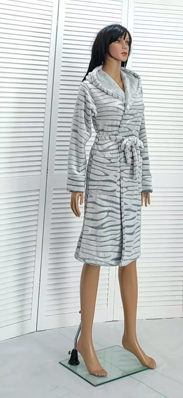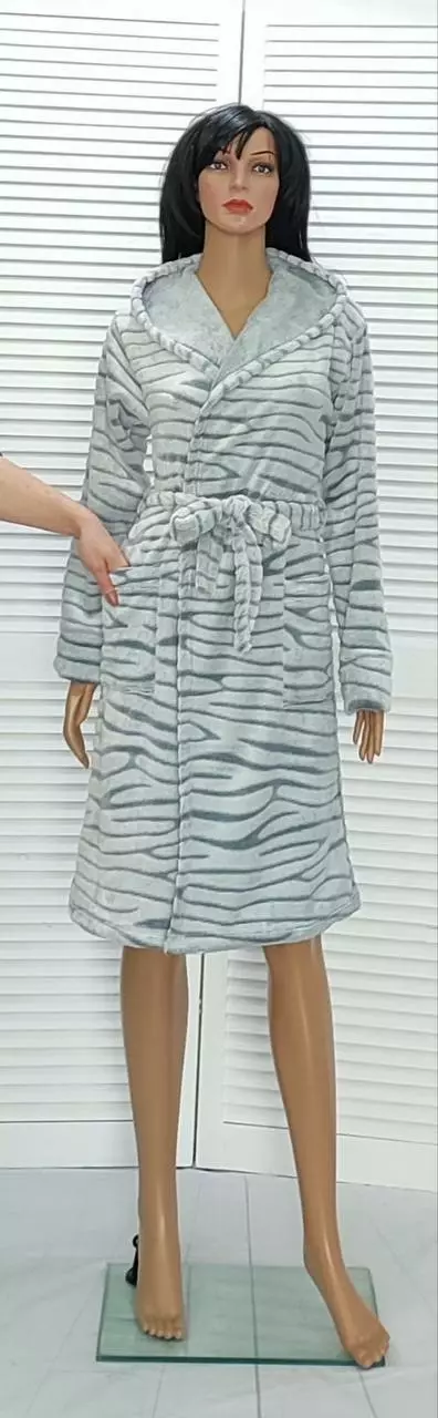 Махровый(Вельсофт)халат черый Шиншилла.Красивый и теплый халат,его мы шьем уже много лети ета расцветка всегда остается модной и актуальной среди клиенток оптовый и розничных.Халат на запахс двумя карманами и поясом.
