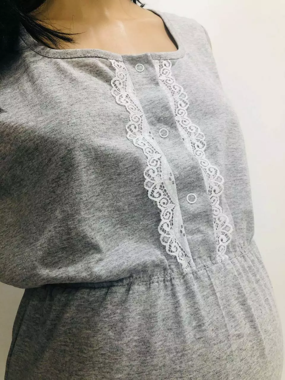 Ночная рубашка для беременных и кормящих мам.Трикотажная хлопковая ночная рубашка,под грудью мягкая резиночка,она растягивается на любой животик не давит и отлично смотрится до и после.Застежка кнопочка,очень удобно кормить малыша.Нежная ночная рубашка,ничего лишнего,украшена мягким кружевои и все