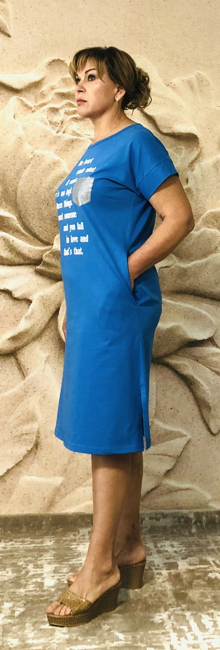 Платье летнее от производителя Triko.Новая колекция летних платьев Украинского производителя оптом и розницу.Покупайте без переплат от производителя.Трикотажное платье свободного кроя,с двумя боковыми карманами и разрезами.Хлопковая ткань,рисунок мягкий,не парит.