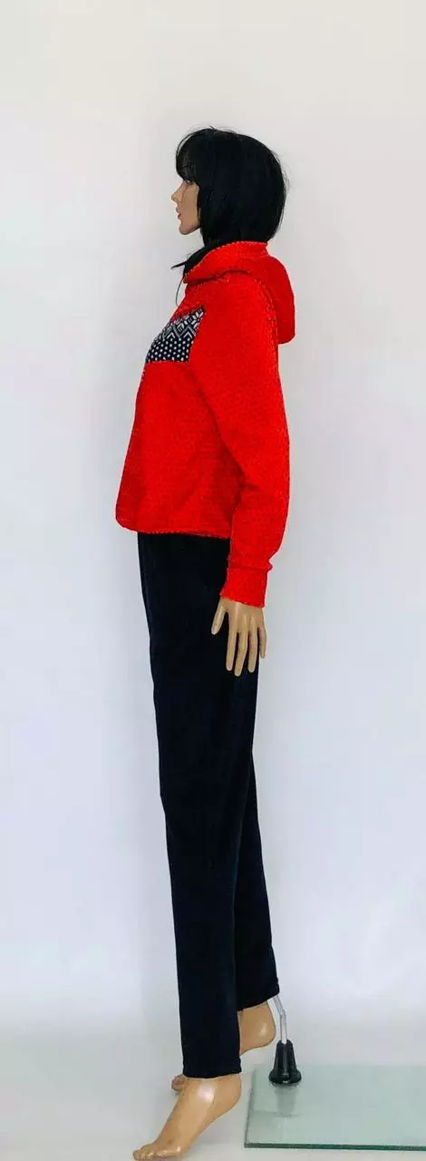 Спортивный костюм велюровый от производителя.Он очень красиво смотрится,в нем можно свободно ходить по городу,на дачу,но так же в нем можно ходить красиво дома.На брюках широкая резинка и высокая посадка и два кармана.