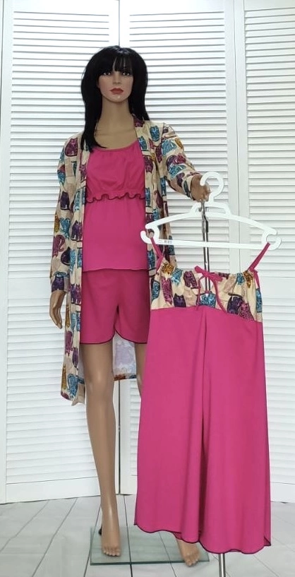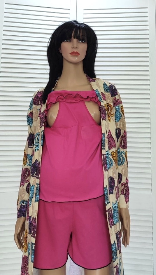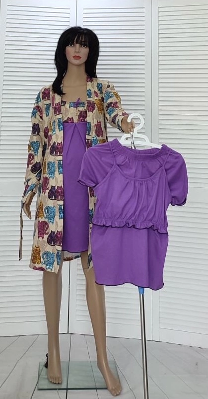 Теплый хлопковый комплект,на байке для беременных и кормящихю.Красивый комплект для беременных и кормящих.Такой комплект в роддом то что нада.Внего входитночная рубашка для родов и теплый хлопковый халат,и после родов топ и шорты,очень удобно для кормления.