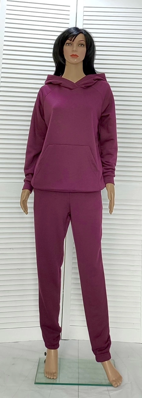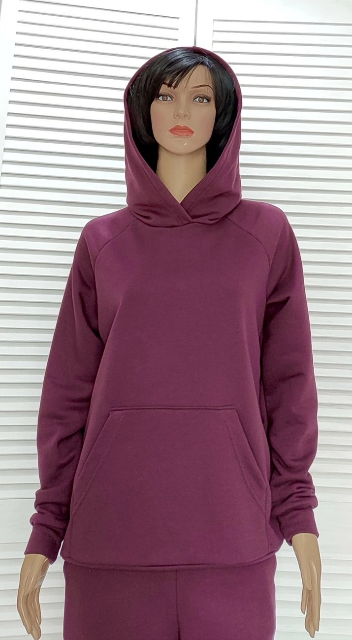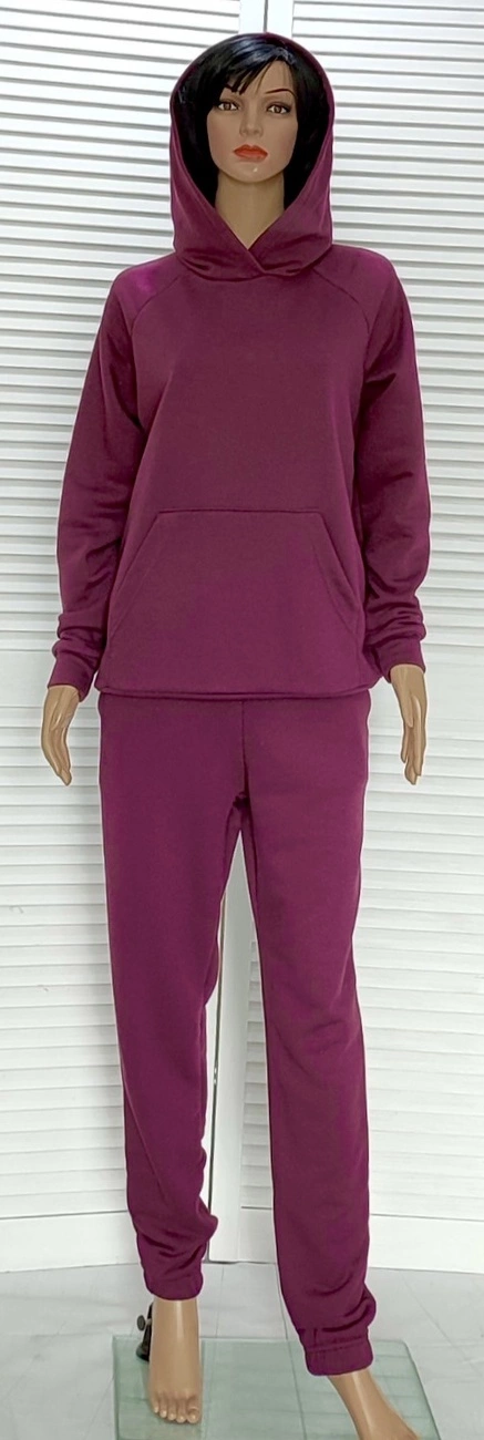 Теплый спортивный костюм из качественого полотна трехнить петля на хлопковой основе.Штаны с карманами свободного кроя,средней посадки,низ обработан резинкой.Кофта с капюшоном и двумя карманами.