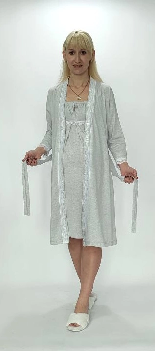 Красивый трикотажный комплект халат и ночная сорочка.Ночная на завязках как шторка,очень удобно для кормления.Комплект пошит с качественног7о ттрикотажного полотнахлопок которое не деформируеться после стирки.Халат пошит с двумя карманамии пояс в петлях.
