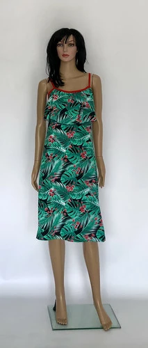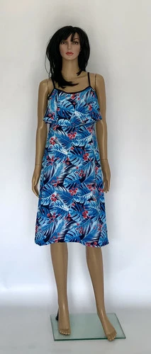 Яркие трикотажные сарафаны с рюшей до колена.