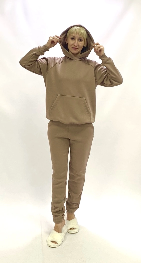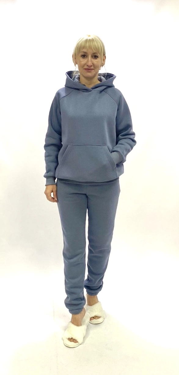 Женский спортивный костюм теплый,ткань трёхнитка пинье на байке.Теплые и ткань не катаеться.Толкстовка с карманами,капюшон с подкладкой,штаны под резинку и боковые карманы.