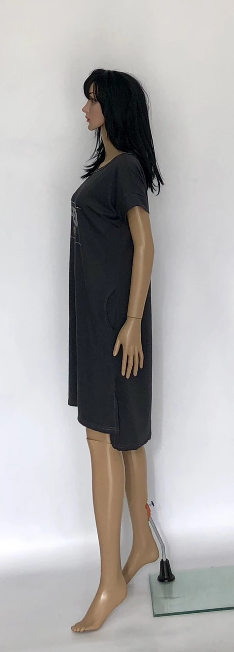 Современное женское платье однотонное, с яркими камнями и надписью